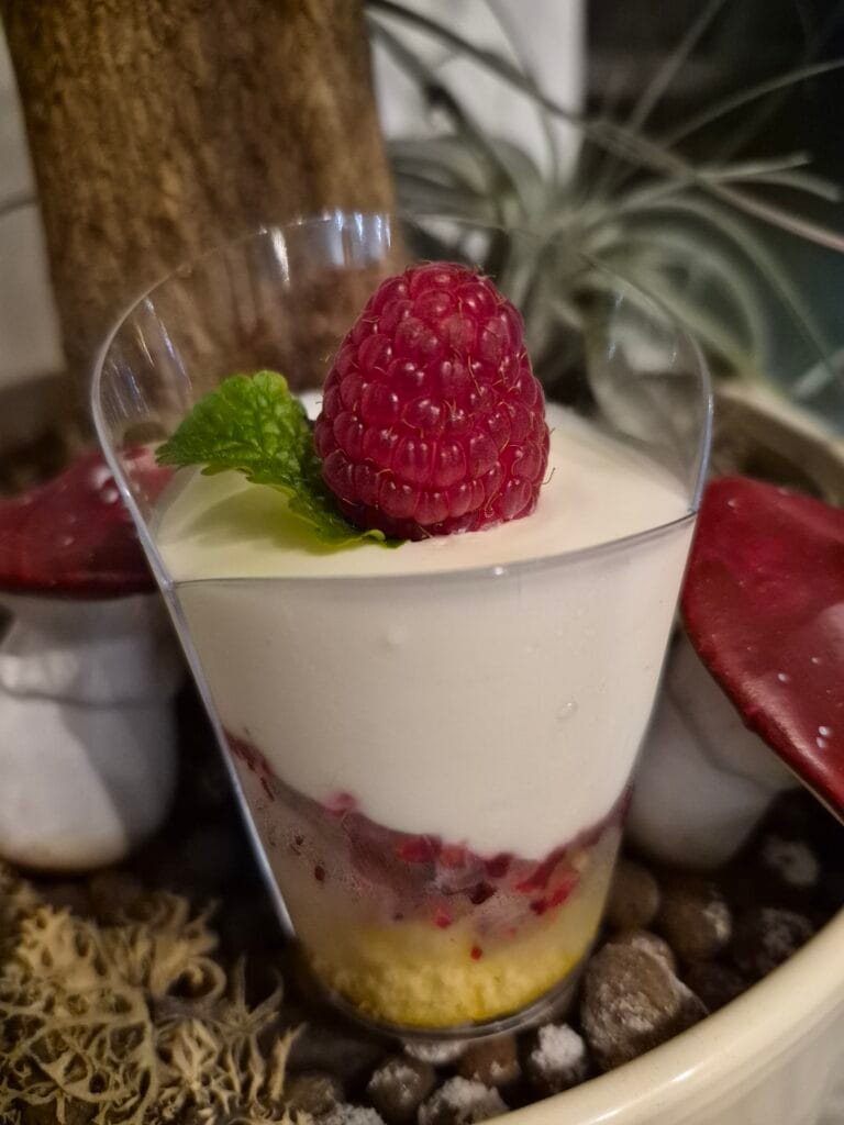- sladico v kozarcu – jogurtova strnjenka z malinami,