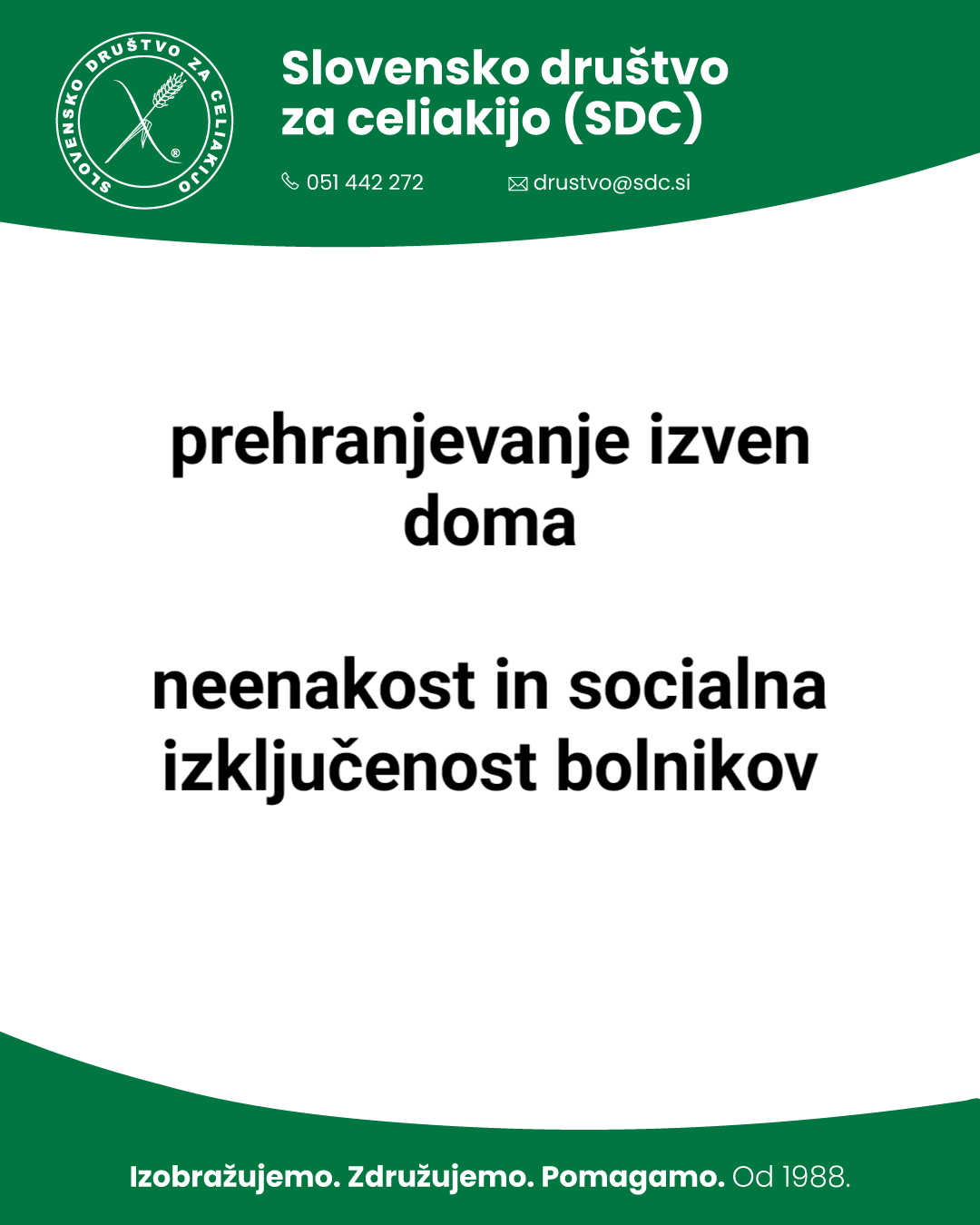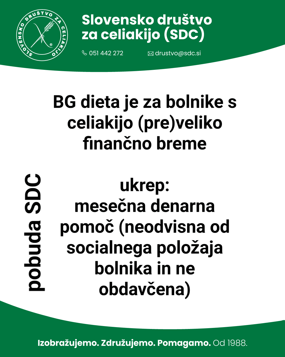 V Slovenskemu društvu za celiakijo (SDC) ob tej priložnosti izpostavljamo najbolj pereče probleme bolnikov s celiakijo pri nas, ki smo jih razvrstili v 3 točke: