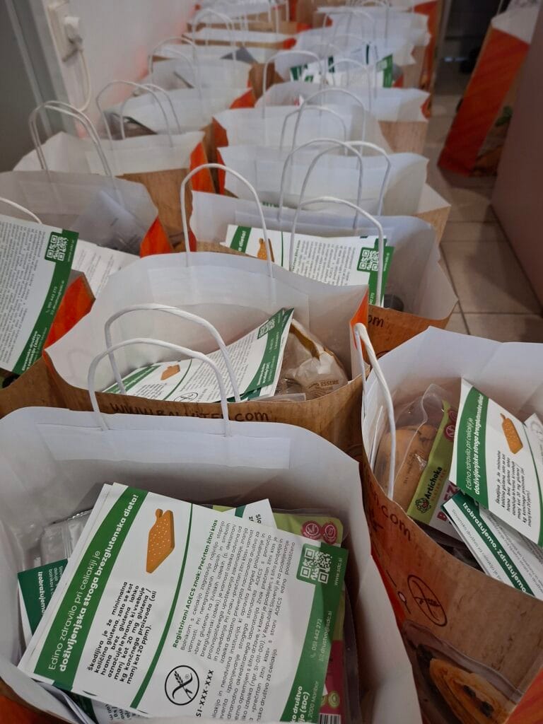 Udeleženci so prejeli tudi darilne vrečke z brezglutenskimi dobrotami ter knjižico brezglutenskih receptov, za kar se najlepše zahvaljujemo našim partnerjem: Prema d.o.o., Artichoka Gluten free, Sapidum d.o.o., Hedl ranč, Bodifit in Bodifit Caffe.