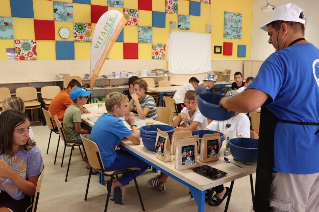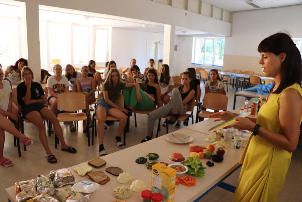 Po zajtrku smo se odpravili po aktivnostih. Starejši so odšli na športne igre, mlajši so poslušali predavanje o zdravi prehrani in celiakiji. Veliko uporabnega so slišali, živahno so prispevali k diskusiji in delili svoje izkušnje. Športne igre so vključevale skupinske igre kot nogomet, košarka in odbojka, poligon in »vroč kokos« za konec. Po delavnici smo šli na kosilo.