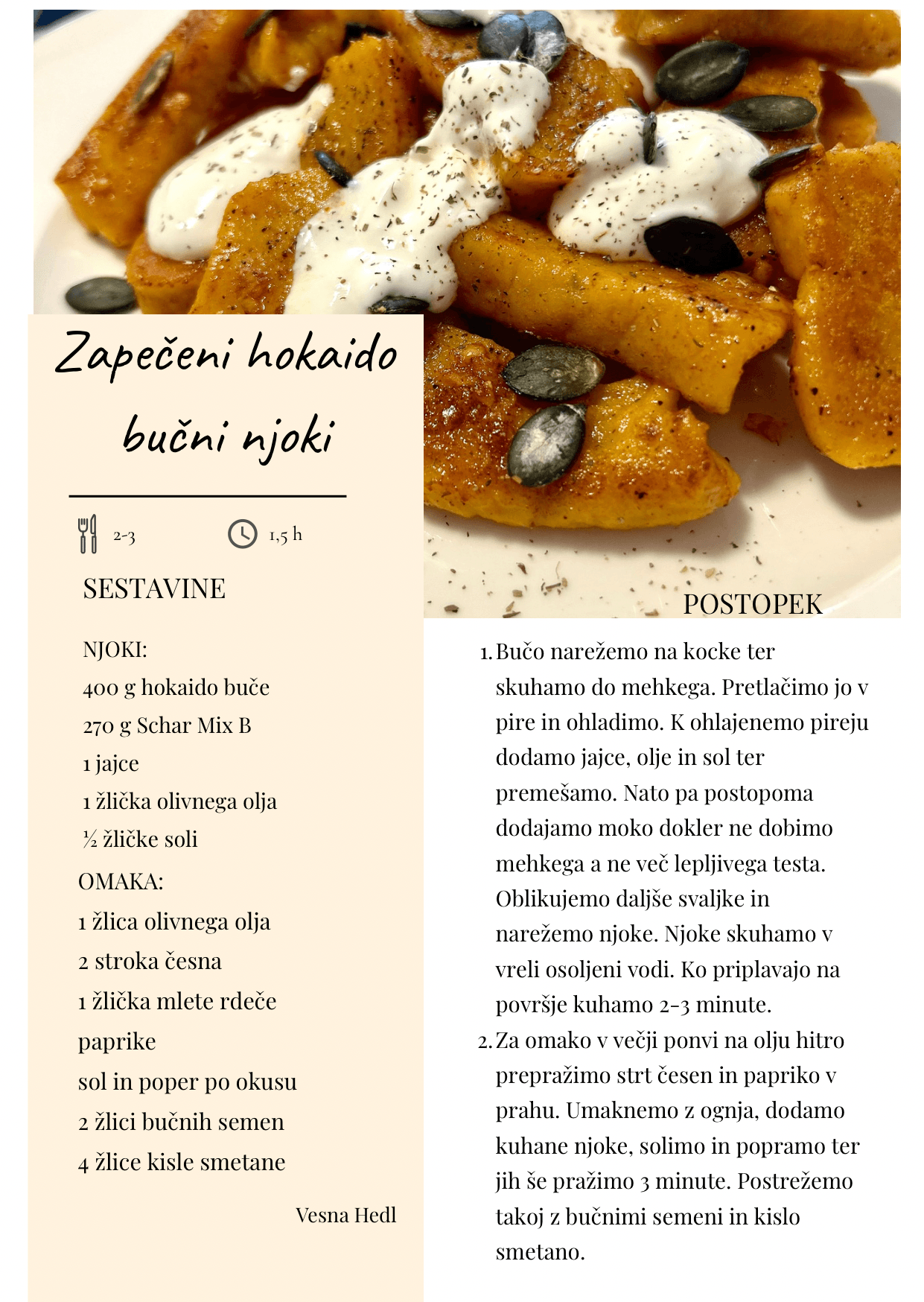 Recept meseca – november 2025: Zapečeni hokaido bučni njoki (Vesna Hedl, Kamnica pri Mariboru)