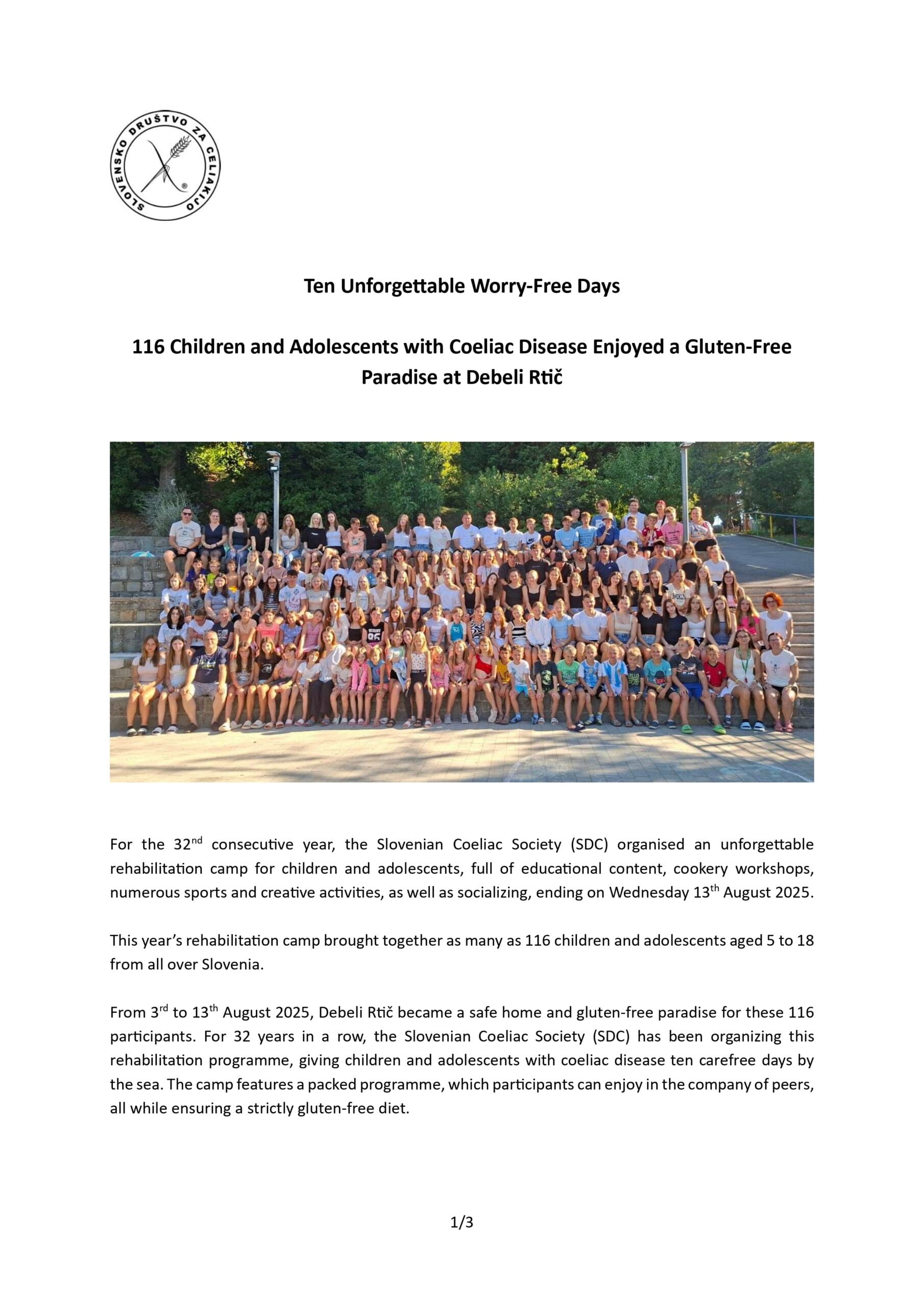 [Report] Ten Unforgettable Worry-Free Days – 116 Children and Adolescents with Coeliac Disease Enjoyed a Gluten-Free Paradise at Debeli Rtič