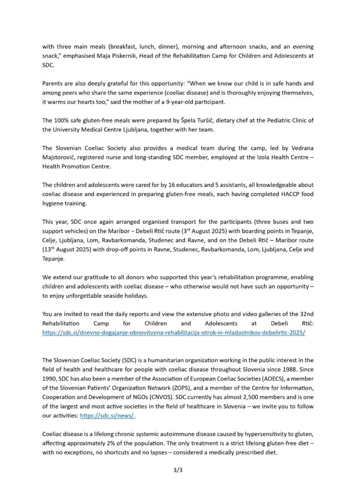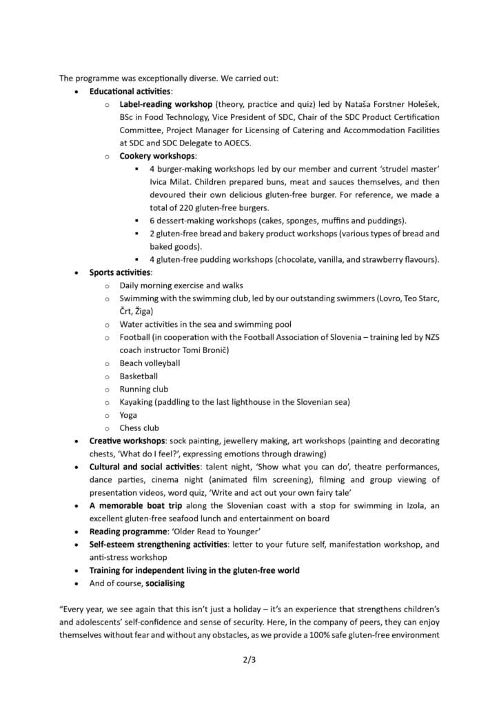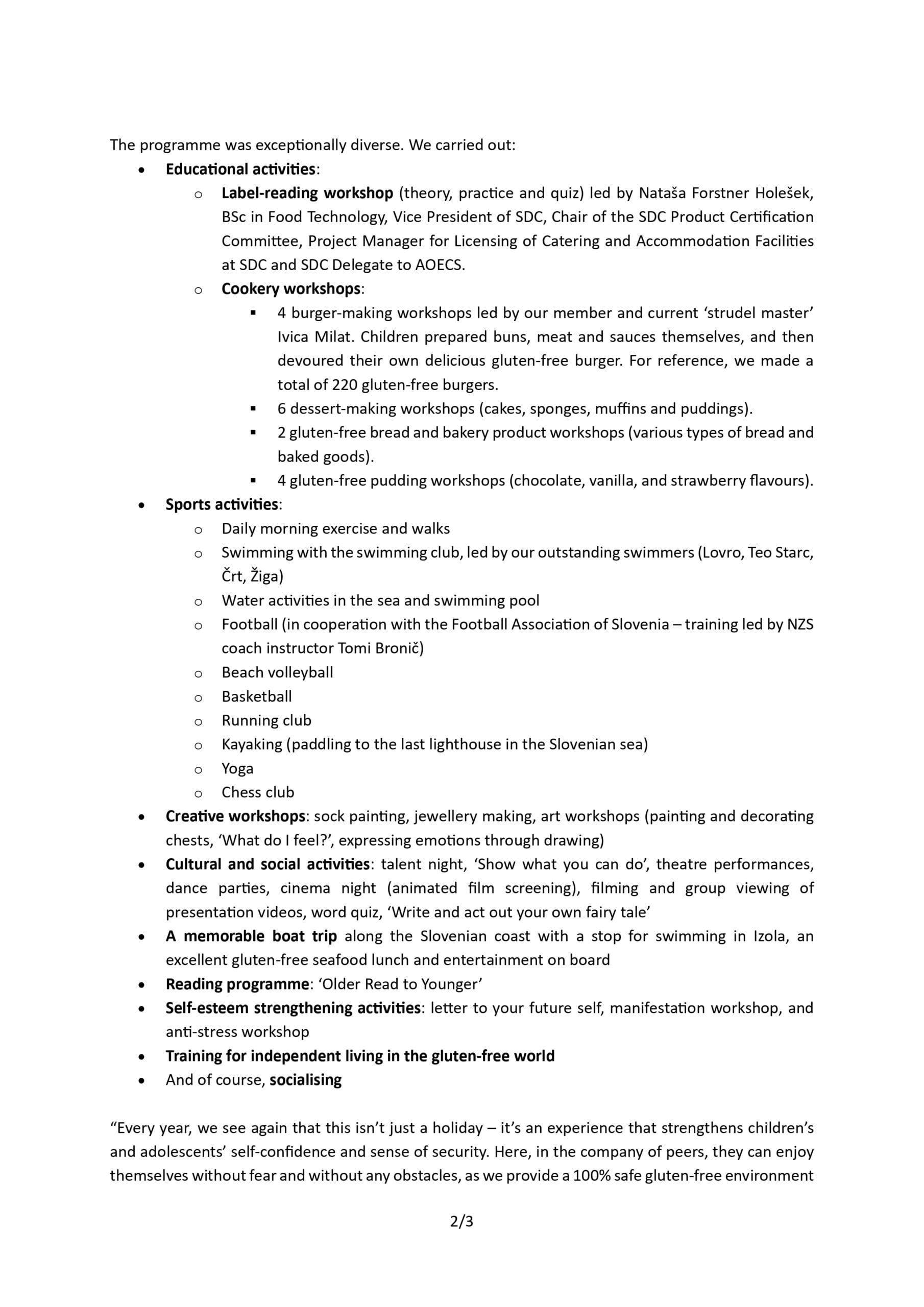 For the 32nd consecutive year, the Slovenian Coeliac Society (SDC) organised an unforgetable rehabilitation camp for children and adolescents, full of educational content, cookery workshops, numerous sports and creative actvities, as well as socializing