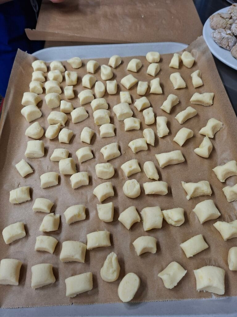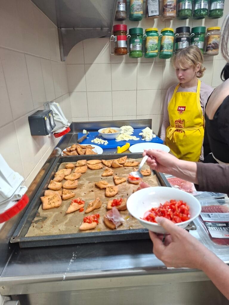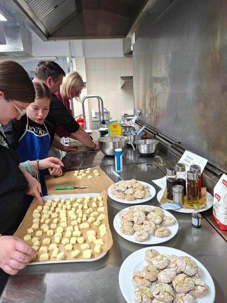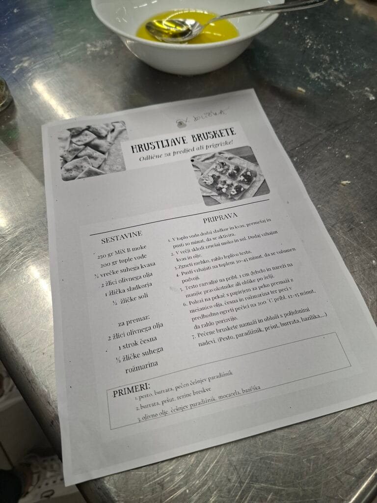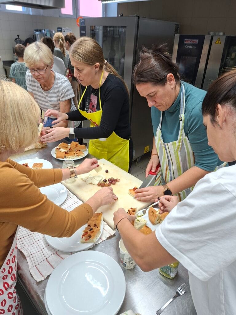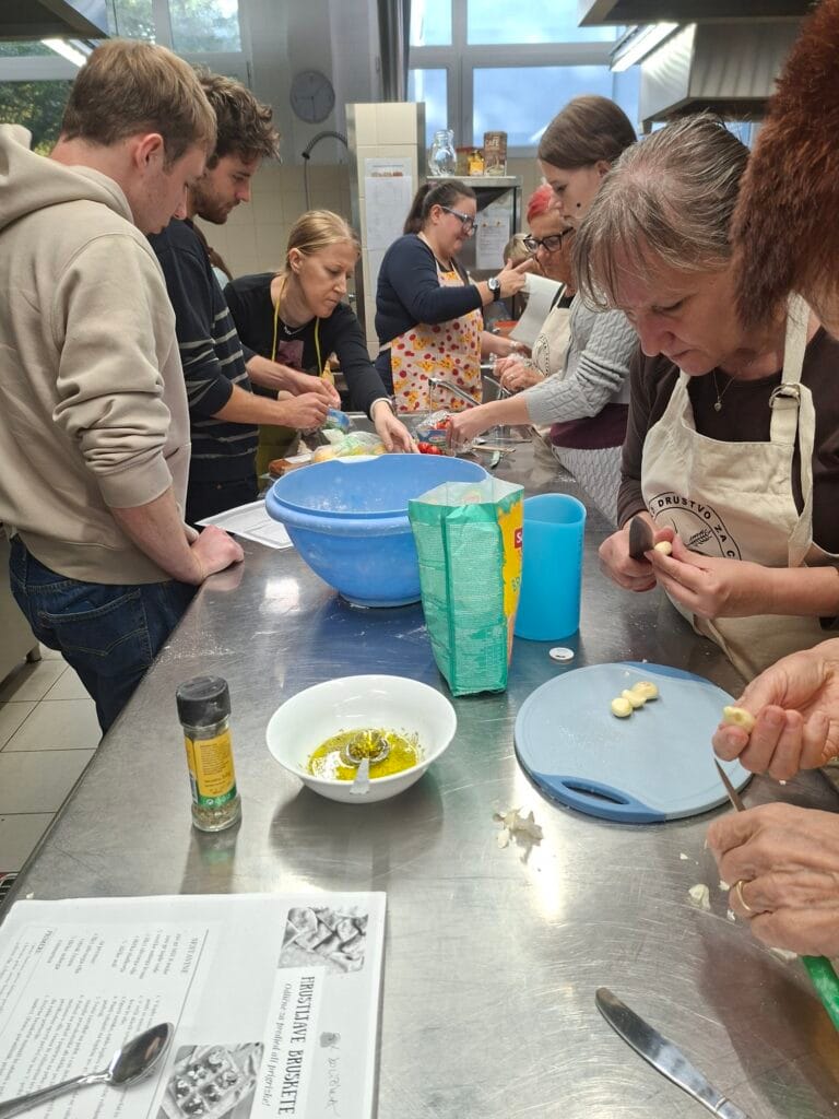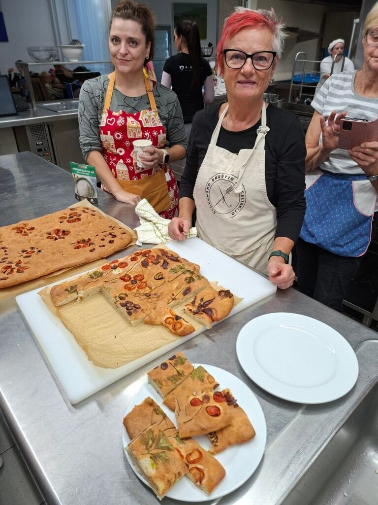 Udeleženci so pripravili hrustljave bruskete z različnimi nadevi, brezglutenske njoke, domače brezglutenske testenine, focaccio z zelišči in olivnim oljem ter klasične italijanske amaretti piškote in jagodni tiramisu.