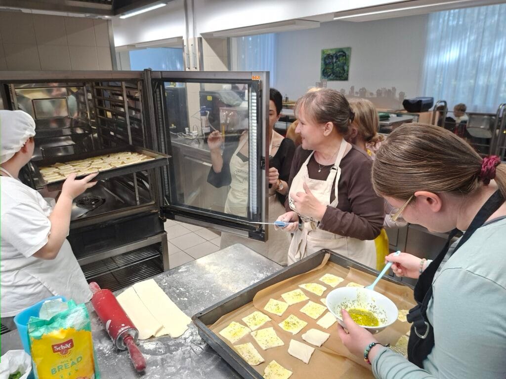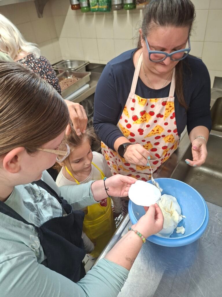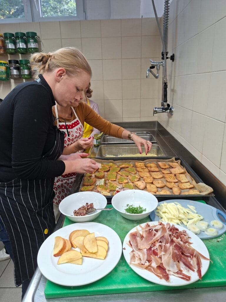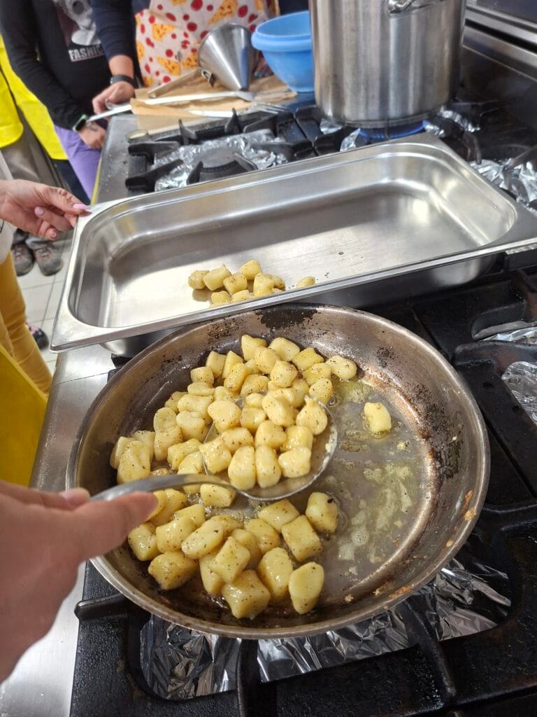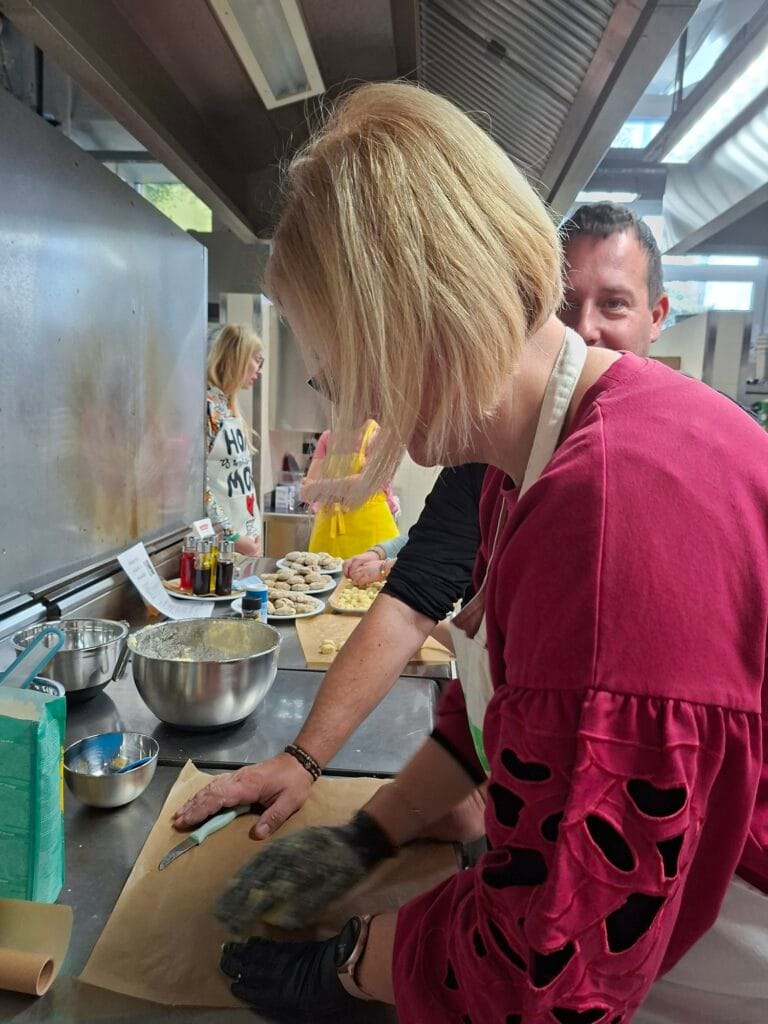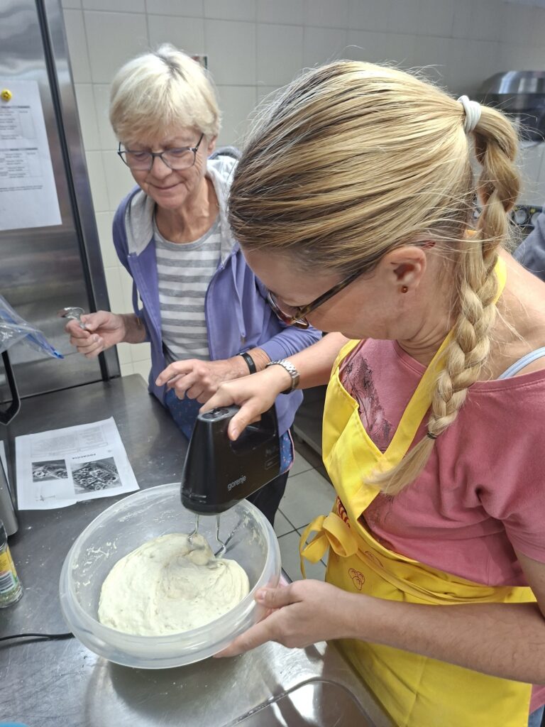 Udeleženci so pripravili hrustljave bruskete z različnimi nadevi, brezglutenske njoke, domače brezglutenske testenine, focaccio z zelišči in olivnim oljem ter klasične italijanske amaretti piškote in jagodni tiramisu.