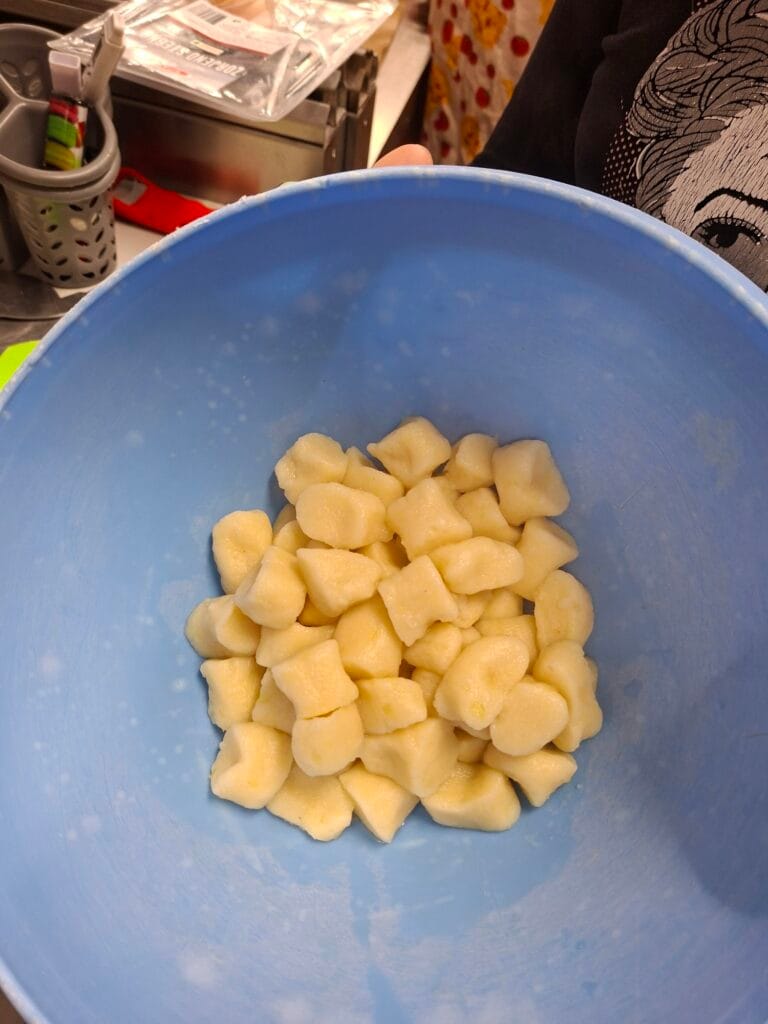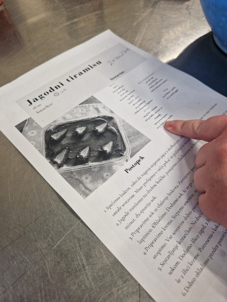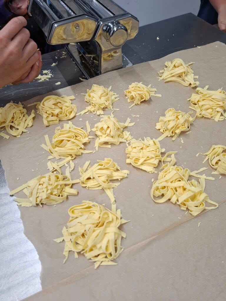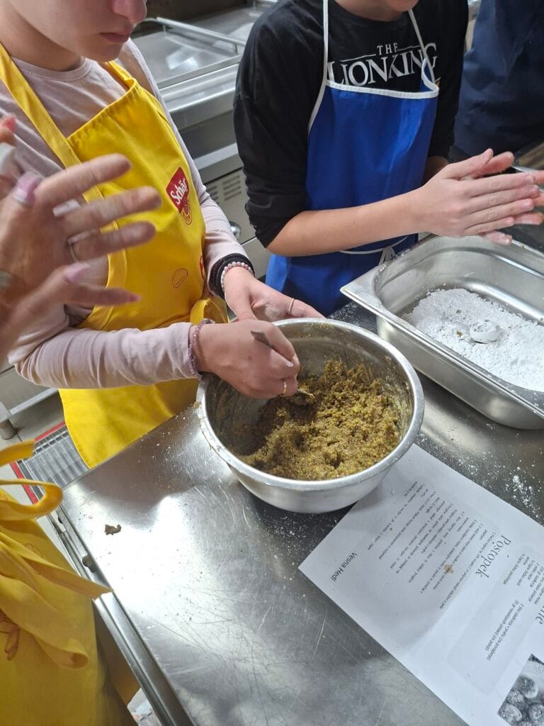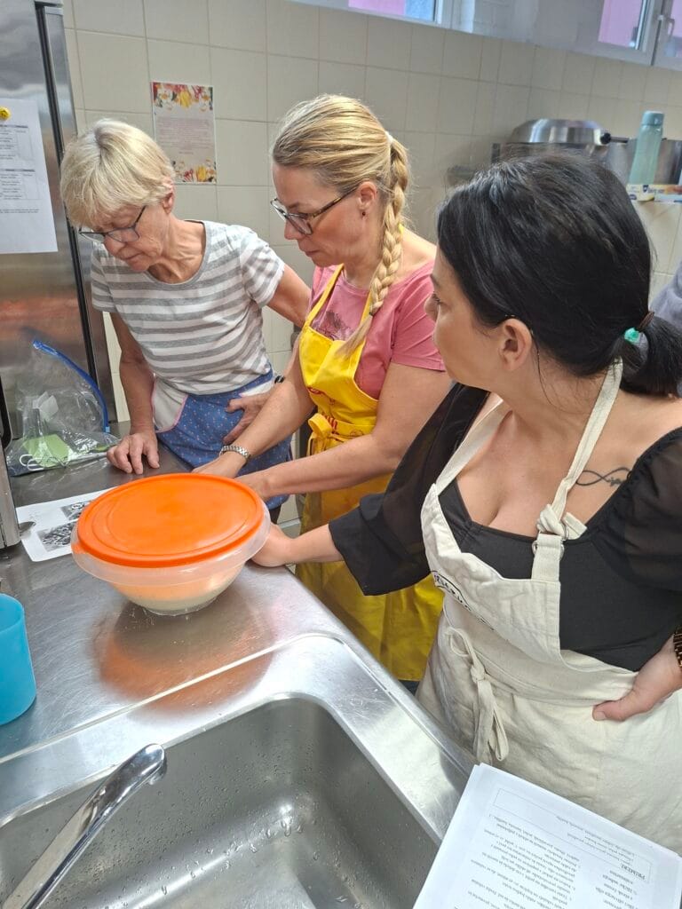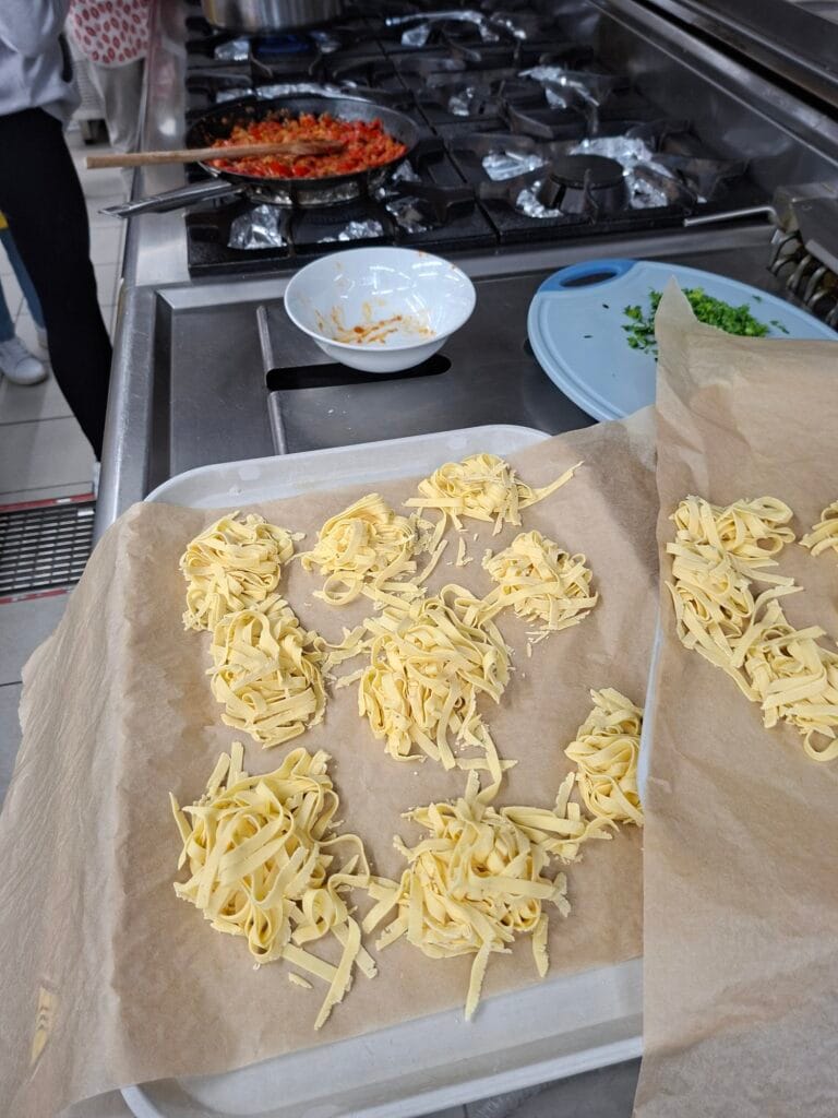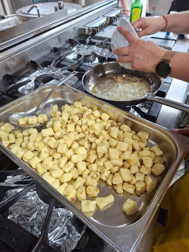 Udeleženci so pripravili hrustljave bruskete z različnimi nadevi, brezglutenske njoke, domače brezglutenske testenine, focaccio z zelišči in olivnim oljem ter klasične italijanske amaretti piškote in jagodni tiramisu.