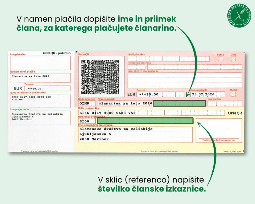 S plačilom članarine za tekoče leto (in poravnanimi članarinami za pretekla leta) ste upravičeni do vseh prednosti članstva v Slovenskem društvu za celiakijo.